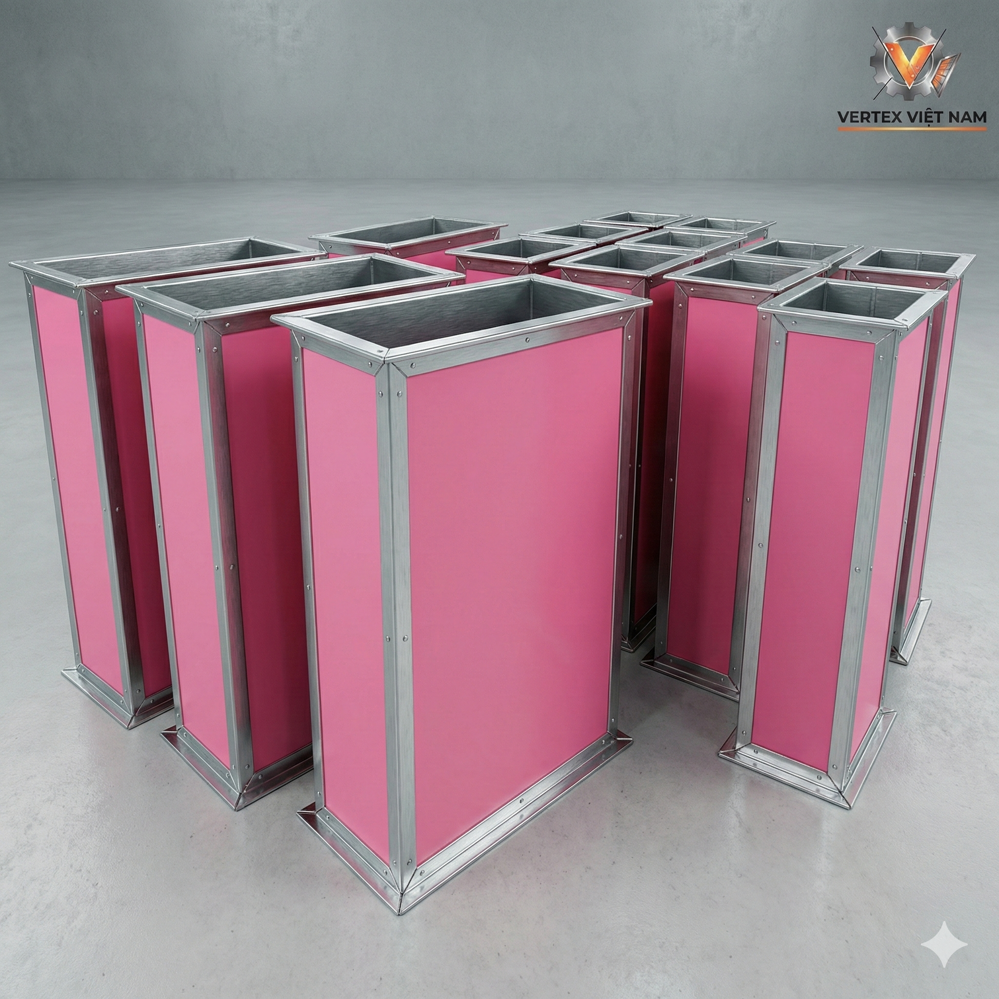 - Vật liệu: Tôn mạ kẽm (thường dùng tôn Hoa Sen, Phương Nam hoặc Bluescope) hoặc Inox (201, 304), kết hợp lớp cách nhiệt chuyên dụng (có thể là bông khoáng, sợi thủy tinh) màu hồng.